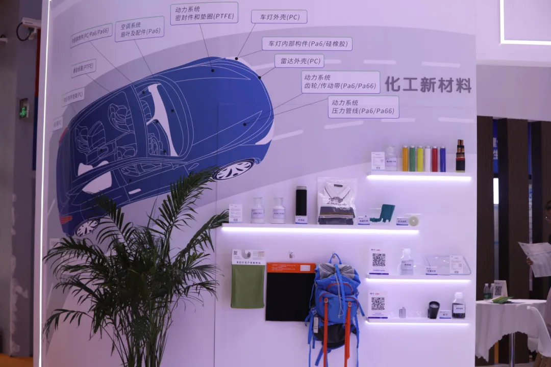 特色展区 【衣、食、住、行全场景】 从鲁西集团的PC、PA6、聚全氟乙丙烯等工程塑料,到扬农集团的PA66特种工程塑料,再到蓝星埃肯的光学级硅橡胶等功能材料,这些产品具有轻量化、高强度和密封性好等优异特性,目前这些材料已经广泛应用于汽车仪表板、发动机部件、车灯透镜和线束密封等关键部位,在保障汽车轻量化、密封防护、运行安全等方面发挥了关键作用。