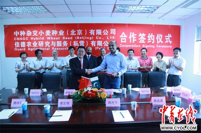 杂交小麦打开小麦高产的“密钥” 良种合作是中化集团践行“一带一路”倡议的重要载体。 小麦是舌尖上的“一带一路”当仁不让的主角,作为“一带一路”国家最主要的口粮作物之一,“一带一路”沿线国家小麦种植面积超过11亿亩,为中国小麦面积的约3.5倍。而“一带一路”沿线国家小麦单产水平普遍较低,提升潜力巨大。 杂交小麦是一个世界性难题,也是打开小麦高产的“密钥”,一直以来是国际种业竞争的技术高地。北京市农业科学院赵昌平研究团队于1992年首次发现了小麦光温敏雄性不育现象和材料,经过20多年努力,首创了中国二系杂交小麦技术体系,破解了国际杂交小麦长达60年的科学难题和技术瓶颈。 2011年,中化集团下属中种公司和北京市农林科学院共同投资设立中种杂交小麦种业(北京)有限公司(简称“中种杂交小麦公司”),成功实现杂交小麦产业化,使得中国成为全球二系杂交小麦研发的核心基地,拥有杂交小麦高端技术的自主知识产权。 中国在杂交小麦上的重大技术突破,令远在南亚次大陆西北部的巴基斯坦心动不已。相比传统品种,杂交小麦具有高产、稳产、抗逆、用种量少等特点,尤其适合中低产区推广种植。 小麦是巴基斯坦第一大粮食作物,但其小麦单产水平较低,迫切需要引进国外先进小麦育种技术。 2012年以来,中种杂交小麦公司、北京杂交小麦工程技术研究中心与巴基斯坦最大的农业公司佳德农业公司、白沙瓦农业大学合作,在巴开展二系杂交小麦合作试验示范工作,由此开启了杂交小麦的“一带一路”农业国际合作之旅。 2013年,巴基斯坦政府来函要求加强中国杂交小麦在巴基斯坦推广应用。2014年世界种子大会期间,中种杂交小麦公司与巴基斯坦佳德农业公司签订了为期十年的商业合作协议,率先在巴进行市场开发,中巴之间杂交小麦技术合作日趋紧密。