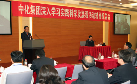 罗总在报告会上指出,学习实践科学发展观活动是当前各项工作的重中之重,广大党员特别是党员领导干部,在当前金融危机加剧、经济形势动荡的情况下,要更进一步认识开展学习实践活动的现实意义和紧迫性,进一步增强抓好学习实践活动的主动性和自觉性,紧紧围绕“以科学发展观为指引,化危为机,加速转型,提升中化集团国际竞争力”这个实践载体,确保学习实践真正取得实效。