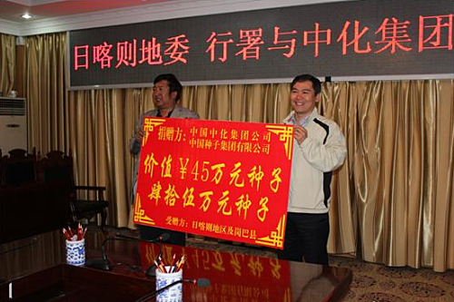 8月20日,中化集团下属中国种子集团有限公司(简称中种公司)向西藏自治区日喀则地区岗巴县捐赠了一批蔬菜良种,可满足当地3620亩的种植需求。此次捐赠义举获得当地广大干部群众的高度评价,日喀则地区领导指出,中种公司的良种将为丰富藏区农牧民的“菜篮子”、改善饮食结构发挥积极作用。 此次中种公司向岗巴县捐赠的种子包括甘蓝、西葫芦、白菜、黄瓜和番茄等,共计465千克,价值45万元人民币,均为中种公司自主经营品种。其中西葫芦品种“翠莹101”和“翠莹105”、番茄品种“奥林618”是中种公司自主研发的品种,具有出芽率高、适应性强等优点。 中化集团自2002年起与西藏岗巴县确立了对口支援关系,公司坚持“造血为主、输血为辅”的原则,投入资金近1.2亿元,推进惠及农牧民的基础设施建设与职业培训等工作,有力促进了当地经济、社会、文化的发展。近年来,中种公司积极响应集团的援藏工作部署,在派出援藏干部的同时,还充分发挥自身业务优势,为当地提供良种,并与当地农业科学研究所合作,在日喀则、那曲、阿里、昌都等地区,联合进行玉米、蔬菜和向日葵等品种的引种、试种工作。经过三年多的摸索和努力,公司在高原高寒地区运用温室大棚技术,成功开展反季节蔬菜种植,积累了宝贵的经验。 |