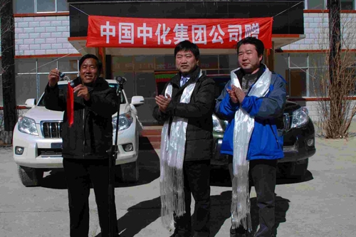 图为作者(右一)与同批中化援藏干部杨宏(右二)在中化集团向岗巴捐赠工作车辆仪式现场。 在我们这一届援藏干部中,已经有3人先后在西藏去世,有因患上高原性肺水肿的、有因车祸去世、还有因心肌梗死离开人世。他们来到西藏,带着奉献西藏的美好情谊,为当地的生产和建设做了大量工作;他们走得光荣,因为他们奉献了身体和家庭,更奉献了人生! 每一个来西藏的人,都会被西藏的博大广阔而震撼,也会被藏族人的淳朴而感动。当下,这样的淳朴已经很少见。每一个援藏干部来到西藏后,都想为当地人做点事。我们也分别资助了几个小学生,每次下乡都去学校看看他们及家人。每次看到孩子纯真的脸庞和大人感恩的目光,都会觉得我们即使做得更多都是应该的,因为他们让我们感受到了那份久违的纯真和亲情。 图为作者(左三)与同批中化援藏干部杨宏(右二)在中化集团援建项目奠基仪式上。 |