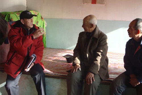 图为作者(左一)走访农户,调研相关工作。 羊群沟乡是和林格尔最偏僻的贫困乡。大山深处的农民住的是昏暗土窑洞,吃的是玉米糊糊,喝的是从几里外驮来的浑浊水,所谓耕地就是石头缝里一小块土地累积而成,种点玉米、山药,仅够维持温饱。进村的路许多都不能称之为路,大小车辆无法通行,人走在上面需要手脚并用。 走进一家农户,破落的院子里别上几棵树枝就算是围墙。土窑里摆着一个破方桌,连把凳子也没有。五年前,女主人贺桂枝患病去世,丈夫为还欠债出远门打工,家中两个未成年的女儿相依为命。看着一贫如洗的家和两个稚气未脱的孩子,我的眼睛湿润了,把现金塞到上初中的大女儿王艳手里说,“孩子,有共产党,有中化,保证让你上得起学,还要过上好日子”。 云二利重度残疾,常年卧床。他八十岁的老父亲、老游击队员云大爷还得下田劳作。当我将面、油等食品交到他手中时,老汉流着泪不住地说“感谢共产党,感谢政府”。战争年代,这片红色革命根据地里的父老乡亲们为革命作出过巨大牺牲和贡献,如今还有很多乡亲依然在贫困中挣扎,我的心情很沉重。 近年来,和林县经济快速发展,扶贫取得很大成绩,但仍有145个贫困村、3.6万贫困人口居住在缺乏基本生存条件的干旱山丘区。帮扶工作就是要紧紧瞄准贫困群体,改善他们的生产生活条件,摒弃传统的给钱、送物等就地扶贫办法,开辟收缩转移、异地搬迁的新途径。
