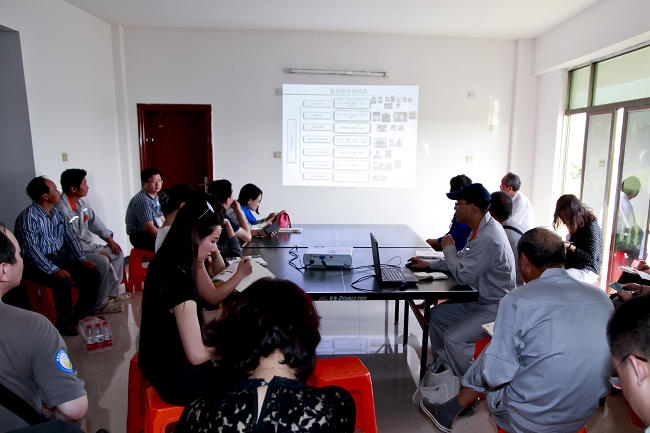 图为育种家在育种站里向网络名人、网媒记者介绍育种的技术发展历程、行业现状以及未来趋势等 在中种公司三亚育种基地,网络名人、网媒记者和微博网友听取了育种家们对育种技术发展历程、行业现状以及未来趋势等的介绍。大家了解到,水稻育种要涉及土壤学等十几门学科,育种家们要从种子家族的父辈和母辈中精挑细选,不断筛选测试,定向组配,甚至使用高精尖仪器“精确制导”,让种子遗传上家族“优良基因”,克服前代“自身缺陷”,最终还要通过种子界“高考”(国审和省审),才算成为合格成员,要花费近10年光阴。“绿了荒山,白了头发”,是育种家们的真实写照。
