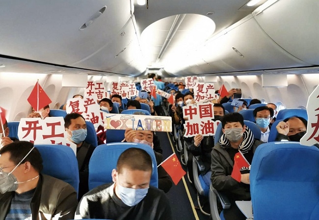 中化泉州乙烯项目部施工人员包机回泉州复工 保运转,人不在事照办。在不影响日常业务运作的情况下,中化集团及各事业部采取“现场办公+远程办公”模式,最大限度减少办公场所人员数量;推行弹性工作制和轮岗制,坚持“人不在职责在、人不在事照办”,确保各部门各企业正常运转;采取多种措施,落实复工阶段的疫情防控、安全生产措施,确保员工安全和企业的正常化经营;人员采取错峰取餐、工位就餐等非集中式用餐方式;及时为现场工作员工发放防疫物资,保障员工健康安全;对所有会议、培训活动、办公楼门禁严格把关等。 保供应,农资物资不断供。中化泉州石化根据市场供需情况和效益优化原则,对加工负荷进行调降优化,春节期间生产正常开展的同时,确保厂内疫情可防可控、各装置安全平稳运行。 为应对疫情严重地区可能出现的农资短缺问题,中化集团部署下属化肥、农药、制种工厂在春节期间加班加点,开足马力保障生产,同时积极对接上游供应商,及时采购货源,全力保供应;通过MAP服务中心贴近农户服务一线,利用自建“肥易通”电商平台,打通生产供应和市场需求两端,解决农资配送“最后一公里”问题,实现农资点对点配送;通过线上线下相结合的精准服务方式,组织农民技术培训、优质农资订货会等,指导农民恢复生产。 春耕期间,预计中化集团化肥供应量总计可达650万吨,较去年同期增长10%。截至目前,中化农业在全国主要农业省份准备了化肥500万吨、玉米种子2000万公斤、水稻种子3000万公斤、农药2万多吨,以满足春耕需求。 保经营,创新商业模式。中化石油加油站目前在湖北、湖南、天津、辽宁、黑龙江、吉林等14个地区已经推广“一键加油”服务。会员顾客可以通过所在地区的中化石油销售所属企业微信服务号,选择“一键加油”服务,系统将自动定位所在油站,待加油完成后,选择油枪号、输入加油金额,核对订单即可跳转至微信支付页面,一键支付油款,无需卡片、无需下车,轻松付款无接触。同时,部分加油站推出“一键菜篮子”业务,上线新鲜蔬菜水果,并提供送货到后备箱的服务。 中化能源科技在疫情期间免费开放“车辆预约排队系统”,可实现厂区园区自主设定预约装卸货的时间段、广大司机可远程查询排队时间,从而避免车辆聚集的情况,尽可能减少人员接触;还推出“疫区车辆查询”功能,方便用户查询危化品车辆30天内是否去过疫区。 中国金茂为了方便客户了解项目信息,全面上线“线上体验中心”——金茂粉,客户可通过小程序在线查看中国金茂40余城市200余项目,进一步推动金茂智慧化营销进程。 保服务,在线客服不打烊。外贸信托证券信托估值业务依靠自主研发的自动化估值系统,远程操控即可实现系统自行运作,并做到估值及时准确。财富管理中心凭借全方位线上应用场景,实现“服务不打烊、发行不断档、市场不缺位”,为出行不便的广大投资者提供财富管理、资产配置、防疫宣传等服务,让客户足不出户也能享受优质服务。 中化农业近千名基层农艺师团队疫情期间利用各种线上直播、小视频等新媒体新渠道,丰富对农民的交流沟通和服务方式。组织农民技术培训、优质农资订货会等800余场次,农民受众超过百万人次,受到农户广泛好评。 在抓好疫情防控的前提下,中国化工系统内各企业转产扩产保防控,复工复产稳经济,科学制定复工方案,有序恢复生产经营。 积极复工。自2月份开始,中国化工每日统计所有国内企业及海外企业在华工厂的产能利用率情况、复工进展、库存情况及目前市场状况,并根据不同地区企业面临的不同困难,“一企一策”展开复工跟踪交流、指导协调,将复工抓紧抓细抓实,坚决打赢经济保卫战。 中国化工应急指挥中心要求各企业建立应急响应机制,制定复工复产方案,细化落实到部门和班组。各企业为在岗员工备齐防护和消毒用品,并在严格落实各项疫情防护措施的前提下,调整生产计划,灵活采购与配送,与客户积极沟通,调整交货时间,确保生产正常运行和客户及时交付。克劳斯玛菲(中国)、先正达等企业还提供24小时的线上技术支持服务,第一时间帮助客户解决设备的疑难杂症。 自新冠肺炎疫情出现以来,财务公司紧急划拨2亿元免息信贷资金额度,专项支持17家成员企业的防疫物资生产。 中国化工统保办发挥统保优势,为在抗击疫情期间有捐赠行为、抗疫物资生产以及湖北地区的企业,推出新冠肺炎疫情保障保险方案,并安排免费投保,保额每人20万元,为企业复工复产解决后顾之忧。 创新攻坚。中国化工以数字化营销构筑发展新格局,各企业积极开展数字化营销,依托电商平台,借助前期积累的数字化竞争优势,抢占市场,力争将危机转化成机遇。 装备公司采取远程控制的方式进行现场指导安装调试和设备问题故障处理。埃肯推出知识分享等特色服务,“云解答”客户提出的技术咨询,埃肯铸造技术服务团队还运用行业领先的VR穿戴设备,通过VR眼镜的直播摄像头和3D会议模式,远程指导铸造厂的现场生产。 见“屏”如面,“云”上签约。在一手抓防疫一手抓经营的大背景下,中国化工多家企业改变营销模式,变“线下约”为“网上见”,通过网络“云签约”,深挖销售渠道,推动项目建设,取得喜人成果。 埃肯星火有机硅数字化营销销售额逾4亿元。埃肯星火有机硅在危机中不断寻求