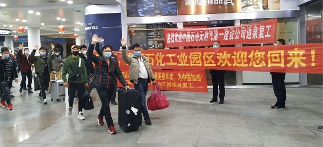 ▲ 中化泉州乙烯项目部首个包机复工施工团队抵泉 郑州→泉州:暖心航程聚人心 2月24日晚19点,在泉州晋江机场的接机大厅,几个人手持欢迎横幅,正在焦急等待着。 “来了来了!”接机口走出了一队人,他们拖着行李箱,脸上挂着笑容,挥着手朝横幅走去,两队人马成功汇合。 “一路辛苦了!”“谢谢你们贴心的安排!”代替握手和拥抱,他们用“安全”的距离和热情的问候,表达着相见的喜悦。 从郑州到泉州,2个小时航程,174位乘客,这是一趟由中化泉州乙烯项目部组织,当地政府配合、厦门航空助力,特别定制的“专机”:所有乘客均来自中油一建,而在机场迎接他们的,正是乙烯项目部的员工。 作为中化泉州乙烯项目的主力施工单位之一,中油一建承接了EO/EG装置的建设任务,此番他们包机自河南归闽复工,正是为了助力乙烯项目建设快马加鞭,再次启航。 “春暖花开,欢迎回来”“开工大吉”“复产加油”……火红的标语给了这些远道而来的施工者最热切的欢迎和祝福。来自洛阳的老黄一只手拖着行李箱,一只手不停挥舞,嘴里说着“终于回来了,早点复工,心里也踏实”。 在有效落实疫情防控各项措施的前提下,2月17日,中化泉州乙烯项目开始全面复工,人员科学有序返岗。然而,对于分布在全国各地的承包商和施工人员来说,他们的复工困难重重:各省疫情不同,不同程度限制出行,短时间内大规模返程难以实现;同时,泉州市自2月8日起对外来人口实施严格管控,要求抵泉后一律进行14天隔离,外来施工人员无法第一时间抵达建设现场。 时间不等人!了解到承包商和施工人员的难处和担忧,乙烯项目部决定主动出击,想办法帮助施工人员返岗。乙烯项目部复工复产的计划得到了当地政府的大力支持:福建省委有关领导、省发改委积极协调,泉州市、惠安县及泉惠石化工业园区管委会全力协助,乙烯项目部牵头,控制部、工程HSE、各项目分部等摸查各地施工人员情况,结合当前疫情防控政策、交通线路、交通工具等情况,多方联络,制定了承包商复工人员返程包机/包座和包长途客运大巴的承运方案,方案涉及10家承包商13个省/自治区的3000名复工人员的返程任务。 周密部署,盼你安全归来;共克时艰,迎接春暖花开! 方案制定后,中油一建积极响应乙烯项目部复工要求,率先组织在豫员工集中返岗。回忆起返回泉州的过程,中油一建总经理杨森脑子里只有四个字:好事多磨。 “最初确定的返程时间定在2月22日,可就在出发前一天——2月21日河南省发布新规,要求出省人员需在网上提健康申报,并在就近医疗点开具健康证明后,方可出省。我们赶紧去网上申报,发现申请人太多网络瘫痪了,而且我们的员工分布在洛阳各县市,开具健康证明也不是一时半会儿就能完成的,这可把我们急坏了。” 政府的防疫规定必须执行,于是22日的返泉计划不得不推迟。杨森在与乙烯项目部沟通后,积极协调洛阳市政府相关部门,成功开通线上+线下双渠道出省办理,短短3天内完成了174名施工人员的出行申报,并通过了健康检查。而乙烯项目部与厦门航空反复沟通协商,最终将出发日期确定为2月24日。 出发当天,由于河南省大巴车有上座率不得超过50%的要求,中油一建协调三辆大巴车、分两次将乘机人员送往新郑机场,第一批人员早上6点钟就出发了。19时15分,“专机”顺利抵达泉州晋江机场,乙烯项目部首次包机助施工人员安全返泉任务圆满完成! 乙烯项目部随后还将安排6个包机/机位包座和包大巴车等方式,安排内蒙古、黑龙江、山东、安徽、江苏等地共472名施工人员赴泉。 机场→公寓:温馨新家胜旧日 “泉州还真是暖和呀,真高兴又回来了!” 旅途的疲惫被重逢的喜悦冲散,174位中油一建人坐上乙烯项目部安排的6辆接机大巴车,分散驶向酒店、宾馆和公寓。在回泉州之前,雷江波最担心的是“无家可归”:受疫情影响,原来租住的村镇都封了,一时间去哪儿找合适的居所呢? 未雨绸缪,乙烯项目部总经理唐汇云根据泉州市疫情防控管理的相关要求,牵头奔赴惠安县多地,多方协调,最终确定了附近9家酒店宾馆以及1栋公寓可以提供给复工人员隔离居住。 其中,船舶公寓是泉州某企业的生活区公寓,乙烯项目部将其租下来,指定为返岗员工居家自我观察管理和医学随访处。该公寓距离乙烯项目约15公里,交通方便,且独立一院,不影响附近居民正常生活,便于统一管理,是医学观察的适宜场所。公寓可同时容纳1120名返岗员工居住,并设通勤车往返。 整整一周,工程管理部和综合部对公寓进行水电维护、设备设施安装、院内杂草清除、生活区垃圾处理转运等准备工作,同时采购桶装水、床上用品、消毒液、卫生用品、热水器、拖鞋等生活物资。如今,这座已经空置了五六年的公寓,变成了施工人员的新家。 当晚住进公寓后,看着温馨的环境,充足的物资,雷江波和同事们的彻底放心了,他们迫不及待拿出手机跟家里人视频,告诉家里自己已安顿好,体检合格后即可上岗,这里一切都好! 按防疫要求,外地返程人员需接受14天的定点隔离,本次返程的174名施工人员,由于采用了全程包机/包车等点对点的封闭交通方式,这部分人员来泉后到指定医院接受健康体检合格,即可乘坐乙烯项目部安排的点对点大巴,做好防疫措施、开始入场上班,每个人可节约12天的隔离等待时间。 包机返程、安排住宿、缩短隔离时间……这一系列如同