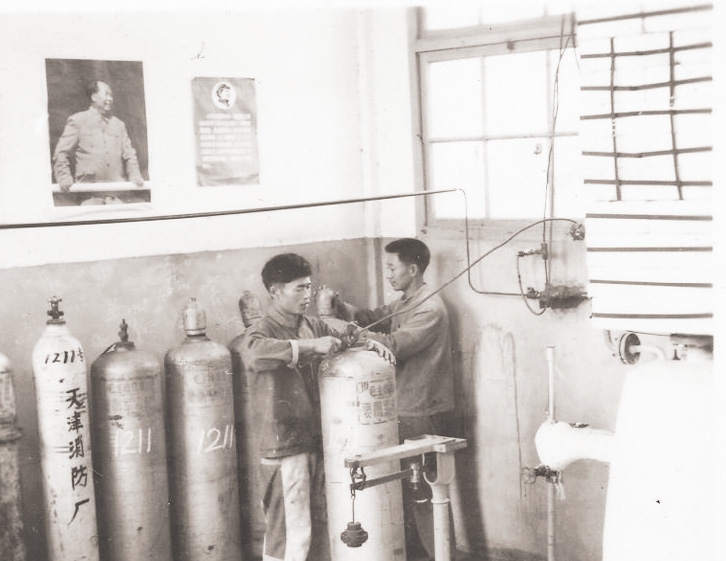 上世纪70年代灌装1211灭火剂的现场 灭火新星璀璨升起 随着全球变暖问题日益严峻,中化蓝天又把目光转向含氟温室气体替代品。 含氟温室气体与我们的生活息息相关,也是造成全球变暖的罪魁祸首之一。联合国《京都议定书》定义了6种温室气体,除了人们熟知的二氧化碳,含氟温室气体占据其中3席。包括HFC-227ea、HFC-236fa等在内的氢氟烃产品的温室效应值(GWP)普遍较高。