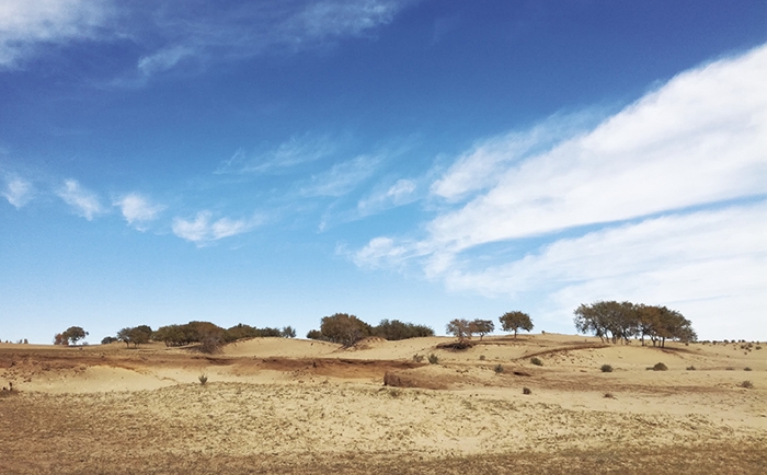 白桦 去年十一黄金周,我和朋友们组了一支越野车队,共同穿越草原无人区。行程已结束很久,但塞外草原的荒凉、沙漠湖泊的静逸,是那样清晰地印刻在我脑海之中,久久无法忘却。 乌兰布统草原 乌兰布统草原是木兰围场的一部分,这里是丘陵与平原的交错地带,森林和草原有机结合,草甸子虽不是一望无际,但也广阔辽远。草甸边缘的漫坡长满了桦树,钻进去,枝叶遮云蔽日,不知林子到底有多大。我们的草原无人区穿越之行就从这里开始了。 33辆越野车浩浩荡荡开出红山军马场没多久,车队就离开公路,转入无人区。越野车驶过坑坑洼洼的土路,扬起滚滚烟尘。 车队休息时,站在一处缓坡上,目之所及只有连绵起伏的草原,疏密相间的树林。深秋时节,草甸已变枯黄,大地犹如铺了一条黄金毯。由近及远,毯子上点缀着各色树木,五彩斑斓,层次分明。驻足在这昔日的古战场,猎猎北风在耳边呼啸,眼前仿佛出现康熙大帝指挥将领们大战噶尔丹的场面,金戈铁马,壮士悲歌,心中不由生出许多感慨。 浑善达克沙地 浑善达克沙地东起内蒙古克什克腾旗,西至锡林郭勒苏尼特旗,总面积2.8万平方公里,是距北京最近的沙源。此次穿越,我们仅走了浑善达克沙地的一个边缘地带,但其独特的风貌已然让人无法忘怀。 与想象中的沙漠不同,在这里看不到一望无际、连绵不断的黄色沙山,映入眼帘的是稀疏的沙榆树、白桦树等,它们摇曳在沙地中,与低矮的灌木丛相互映衬,构成了浑善达克沙地生机勃勃的独特风貌。 乍看这里与乌兰布统草原的地貌似乎差别不大,若不是在进入沙地前,车队要求所有车辆挂四驱,我们都完全看不出这就是浑善达克沙地。进入没多久,沙地就开始发威。一辆越野车陷入沙坑里,任你怎么推,怎么踩油门,只见车轮空转,车子丝毫不动,最后只能靠其它车辆合力把它拖了出来。领教了沙地的威力后,车队开始走得小心翼翼。 沙地中有很多沙棘树,半透明的小红果挂满树梢,引得我们口水直流,摘几颗尝了尝,味道酸酸甜甜,可以和山楂媲美。 据说浑善达克沙地是鸟类的天堂,每年会有大批候鸟来到这里栖息,可我们一路上除了看到几只喜鹊和乌鸦,几乎没有看到别的鸟类。司机师傅告诉我们,由于沙地水源减少,又有人捕猎,鸟就变少了。不过现在政府采取了一系列保护措施,使沙地生态环境整体上有所改善,相信不久的将来,浑善达克沙地会重新成为鸟儿们的乐园。