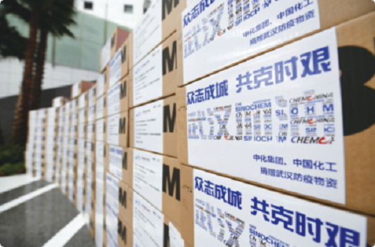 18家上市公司发布两化战略重组公告 1月23日,中化集团和中国化工境内外资本市场18家相关上市公司发布公告。公告称,中国中化集团有限公司正与中国化工集团有限公司筹划战略性重组,重组方案具体内容及其实施尚需履行相关批准和监管程序。9月2日,在国新办举行的企业家中外记者见面会上,宁高宁董事长再次明确,“两家企业合并正在进行,有很强的必要性,将积极推动”,受到中外媒体广泛关注。 两化携手抗疫并获表彰 1月28日,中化石油销售无偿送油10000升到火神山医院建设工地,助力中国速度。1月29日,中化集团与中国化工宣布向湖北疫情防控一线捐款共计5000万元;两化联合向武汉华中科技大学同济医学院捐赠六万只口罩;各级党组织号召和组织广大职工自愿进行捐款;2月,中国化工沈阳院、曙光院迅速转产研制出医用隔离服;宁高宁董事长亲自为中昊晨光自主研发高性能防护口罩取名为“春味”;中国化工向抗疫一线捐赠980000升消毒液。两化下属企业分别被国务院国资委授予“中央企业抗击新冠肺炎疫情先进集体”称号,五名两化员工被授予“中央企业抗击新冠肺炎疫情先进个人”称号。