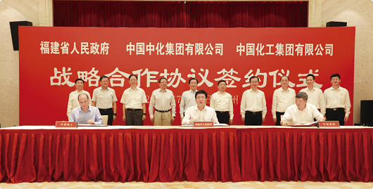 两化与多省洽谈签署战略合作协议 7月以来,中化集团、中国化工分别与福建、浙江、广东等省洽谈签署战略合作协议。两家企业将把这些省份作为重要战略区域,在能源化工、现代农业、城市运营、装备制造、现代金融、生态环保、商务咨询等诸多重点领域开展全方位务实合作。