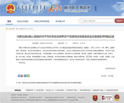 中化集团定点帮扶地区全部脱贫 3月5日,内蒙古自治区人民政府发布公告,中化集团定点帮扶地区赤峰市阿鲁科尔沁旗正式退出贫困旗县序列。至此,中化集团对口支援及定点帮扶的内蒙古、西藏、青海3省区7个受援地全部退出贫困县序列。
