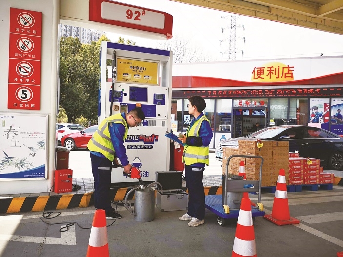 加油站员工使用油气回收系统快速检测仪器自主检测油枪气液比