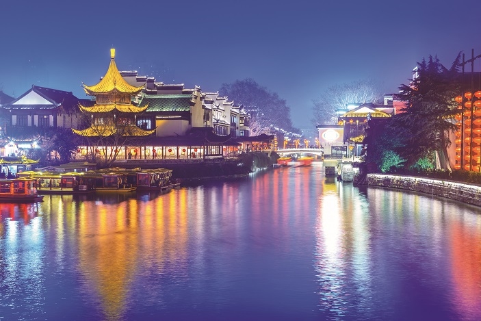 李海虹 舟山国储 还是青葱少年时,读《桨声灯影里的秦淮河》,那金粉楼台、画舫凌波、桨声灯影构成的梦幻美景深深打动了我。这次和家人一起来到夫子庙,终于有机会领略“十里秦淮千年流淌,六朝胜地今更辉煌”的风情。 夫子庙是一组规模宏大的古建筑群,地处南京城南,始建于宋,是供奉和祭祀孔子的地方。夫子庙历经沧桑,几番兴废,目前是中国最大的传统古街市。夜色下的夫子庙步行街繁华热闹,其主殿大成殿的正南方砖墙是一块照壁,全长110米,高20米,为全国照壁之冠。 夫子庙前的秦淮河,东起东水关淮清桥秦淮水亭,越过文德桥,直到中华门城堡,延伸直至西水关的内秦淮河地带。傍晚的秦淮河斜晖脉脉,码头上游人如织,水中画舫凌波荡漾,令人不禁想象当年秦淮两岸盛极一时的景致。 站在文德桥上,看两岸古香古色的建筑群,暗蓝色的河水上各色画舫在行驶,或大或小,都是端庄的红木船舷,明亮的红灯打船头。这种风气在明代就已盛行,据说明太祖朱元璋微服巡察京城,来到秦淮河畔时,看到两岸绿树成荫,河水清澈,亭台楼阁,风景宜人,随口说了句:“惜河中缺游船。”皇帝开了金口,当地官员就连夜差人赶造画舫,以博取皇帝欢心。从此,秦淮画舫成了这里的一大特色。 择一画舫登之,沿着幽幽河水,领略秦淮河两岸风光。沿途处处可见“青砖小瓦马头墙,回廊挂落花格窗”的明清徽派风格建筑。错落有致、黑白辉映的马头墙上,一盏盏红彤彤的灯笼整齐地悬在屋檐下,将秦淮河两岸映衬得明亮可人。灯笼的流苏在微风轻抚下犹如古代娉婷而出的舞女,那婀娜的舞姿,仿佛穿越了时空,把我们带入明清古秦淮的优美画卷中。 秦淮河被称为“中国第一历史文化长河”,想河水汩汩流淌千年,包容了多少文人骚客、仕人遗老,带着一身落寞、半世羁绊,在迷离的夜色里,听江南小调,品香茗佳肴,一时触景生情,留下千古名篇诗句。 “烟笼寒水月笼沙,夜泊秦淮近酒家。商女不知亡国恨,隔江犹唱后庭花。”杜牧的一首《泊秦淮》,正是诗人夜泊秦淮时触景感怀之作,短短二十八字道尽了家国忧思。如今,走在这秦淮河畔,六朝金粉、水洗凝脂的奢华,南宋隅安,一段段醉生梦死、相互交缠早已在历史的长河中灰飞烟灭。 还在神游中,不知不觉船却靠了岸,正如朱自清所说的那样,“我们的梦醒了,我们知道就要上岸了”。