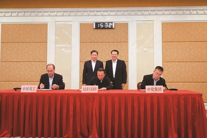中化集团、中国化工与山东省政府签署战略合作协议 11月2日,中化集团董事长、中国化工董事长宁高宁率两家企业代表团赴山东济南,出席两化与山东省战略合作协议签约仪式。根据协议,中化集团、中国化工将山东省作为重要战略区域,在能源、高端化工(新材料)、现代农业(农化)、城市运营、现代金融服务、环境保护等重点领域开展全方位、多层次、宽领域务实合作。此外,中化资本投资公司与山东财金集团、山东国惠基金、聊城安泰城投公司签署《山东省新动能中化环保产业投资母基金合作框架协议》。 期间,宁高宁一行会见山东省委书记刘家义,山东省委副书记、省长龚正及山东省委常委、济南市委书记王忠林,就两化在鲁投资发展、与山东加强合作等相关议题进行深入探讨。