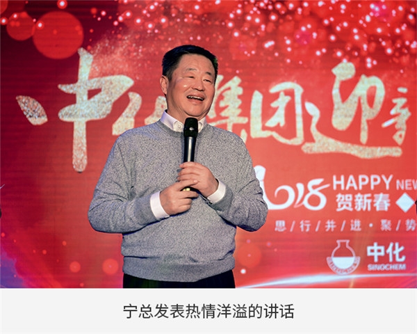 联欢活动由包饺子比赛拉开序幕,每位集团领导分别带领一个职能部室队伍投入战斗,擀皮、包馅,手法娴熟、配合默契。演出环节,员工自编自演的歌曲串烧点燃了全场热情。最后,宁高宁带领到场的党组成员献上一首《真心英雄》,将活动气氛推向高潮。 宁高宁在联欢会致辞中表示,2017年是不平凡的一年。中化全体员工焕发出斗志,充分展现了奋斗精神、创业精神、拼搏精神和奉献精神,使得中化迈上新台阶,业绩远超预期,为今后发展创造了前景和条件。中化取得的所有成绩必须要与员工共享,共享得越多,中化就会越好!在十九大精神指引下,依靠广大员工的共同努力,相信中化2018年的业绩会更好。宁高宁祝愿中化2018年继续有创新性、突破性发展,祝愿全体员工新年愉快、阖家幸福,实现公司与个人的共同进步! 联欢活动还设置了抽奖、猜灯谜、帽子吃糖、锅碗瓢盆进行曲、抢红包大作战、公转自转等别出心裁的游艺项目,受到员工的欢迎,也为寒冷冬日带来阵阵暖意。