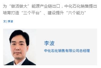 做“活”能源产业链出口文/中化石化销售有限公司 李波 |