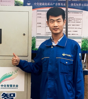 胡昊是中化烟台的一名员工,公司主要从事水溶肥料的生产。胡昊的工作是推广中化农业的专利产品——智能配肥站,同时配合水溶肥的销售和技术指导。 刚接触配肥站时那“痛苦”的经历让胡昊记忆犹新。胡昊接到的第一个任务就是在公司厂区里建一座智能液体配肥站1:1的模型,但当时手头全部的资料就是几张成品照片。虽然之前没有接触过配肥站,也不懂配肥站运行原理等,但胡昊欣然接受了任务。 在中化农业合作伙伴的种植基地,通过反反复复的沟通、学习,胡昊终于掌握了其中的门道,从基础架构的焊接制作,到PVC管的连接、电磁阀的放置,和同事们逐一推敲,一个个困难攻克,奋战了20天,终于赶在100多名山东大客户来参观之前顺利完工,自此胡昊迈出了建站的第一步。 通过持续探索和实践,胡昊很快掌握了独立建站的技术。带着新的使命,他走出熟悉的生产车间,走到田间地头,开启全新的工作模式。他开始为基地农场客户讲解智能液体配肥技术的好处,讲述技术能带来的高效;为客户提供水肥一体化解决方案,为每个基地量身定制适合的智能配肥技术套餐;出差到全国各地,实地协助分公司同事建设中化智能配肥站…… 随着智能配肥站被越来越多的农户认可,胡昊的工作也越来越忙。每月平均出差20多天,已经成为胡昊的工作常态。胡昊说他喜欢在路上,喜欢被人需要的感觉。 带着一份对农业的热爱和对农民的感情,胡昊收拾好行装,再次出发。 冉冉新星