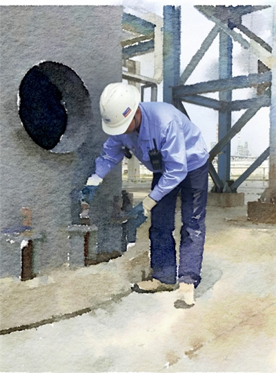 将泉州石化静谧的夜晚用来检修再合适不过了:用心听、细心查,看一颗颗螺栓是否紧固,看黄油是否涂抹均匀。 但是遇到火炬筒体又大又长的螺栓,该怎样维护保养呢?火炬的重要性对于大型炼厂来说不言而喻,泉化的三个火炬筒体关系到全厂的装置。之前,火炬筒体螺栓并没有恰当的保养措施,存在着生锈、腐蚀的风险,最终可能造成筒体底座移位,甚至倒塌。 储运三班的刘勇班长适时提出在大螺栓上抹黄油,再用空矿泉水瓶套在上面,以起到维护保养螺栓的作用。这个方法在经过泉化派驻储运的HSE专员的安全评估后得以运用。一个小小的空矿泉水瓶,竟也发挥出巨大作用,为泉化安全生产保驾护航。 许骥/泉州石化质检中心 杨川/泉州石化储运运行部