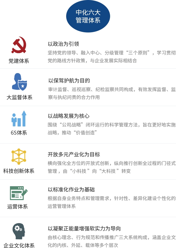 为科学至上构建“四梁八柱” 改革,归根结底就是要对管理体系进行调整完善。改的是制度、是体制,是制约生产力发展的因素,从而使生产关系适应生产力的发展要求,为企业转型发展打牢制度根基。1999年的“管理改善工程”如此,今天的全面转型也是如此。 当前,公司深化改革就是要围绕“科学至上”理念,夯基垒台、立柱架梁,转变思维方式,重构机制环境。这个过程中,过去的成功经验可以借鉴,但更多地需要我们打破思维惯性,创新创造。 2018年4月,集团党组通过了深化改革全面转型工作方案并发布相关决定,从政策支持、创新战略、评价体系、总部改革等八个方面提出36项重点任务,绘制了深化改革的“施工图”,立下了全面转型为科技驱动创新型企业的“军令状”。 深化改革36项重点任务并不孤立,科技、评价、人事等方面的改革任务形成了相互衔接、相互促进的整体,共同目标就是要构建科技创新的生态环境和发展路径。其中,科技改革要建设科技创新体系,以科学全景图和科技规划为基础制定集团战略;评价改革要实现对科技创新全过程的科学考核与评价并建立容错机制;人事改革要系统解决如何引进和留住核心人才、打破人才流动板结的问题。 言必信,行必果。半年来,集团深化改革办公室五个专业组100余位参与者,按照统一部署在明确战略发展方向、重塑文化体系、制定科技创新体系、迭代6S体系等方面制定和完善了一系列有利于公司科技驱动的制度体系,修改和破除一批不利于改革创新、科技发展的制度藩篱,全力围绕科技创新营造制度环境。 目前,各方面改革已基本完成制度设计,相关成果都将相继应用于集团六大管理体系的修订完善,为中化转型发展保驾护航。 突出价值创造,打造赋能型总部 如果说集团推动的各项重点任务是为未来发展奠定基石,那么总部改革就是一场破除体制机制障碍的自我革命。 近年来,公司围绕总部定位的思考从未停止过,一直在探索实践。2016年底,集团对总部组织机构进行重组,明确了“小总部、大业务”原则,达成了打造战略管控型总部的共识,并聚焦六大核心职能组建九大职能部门,调整与事业部的权责关系;2017年,集团实施管理创新工程,下放86项总部运营权限,以建立6S为抓手重构战略管理体系,并明确了“打造世界一流的投资控股集团总部”的目标。 在不断的变革调整中,总部定位愈加清晰:一方面,要紧紧围绕科技驱动的核心战略;另一方面要更加突出价值创造,通过系统管理和资本运作创造价值。为此,我们要从四个方面着手: 一是优化组织结构和治理结构,完善总部建设。突出科技创新方面统筹及投资发展与业务进退方面的科技引领,调整现有专业委员会设置,设立科学技术委员会和投资发展与脱售委员会。按照“职责相关性与匹配度高,有利于减少内部沟通协调成本,促进核心职能发挥”的原则,对现有九大职能部门的部分职责进行调整,进一步突出总部“政治引领、文化感召、资源统筹、机制创新、合规督导”的核心职责,同时理顺共享服务中心管理关系。 二是赋能转型,制定总部权责手册,规范总部运行。在上一轮下放运营管理权限的基础上,继续推动放权赋能,再次下放三项管理权限,并重点解决放权后权责界面运行不够规范等问题,进一步激发基层一线价值创造者的主动性和活力。 三是建立健全六大管理体系,夯实管理基础。以可传承、可优化、可持续、易应用为原则,构建以“科学至上”为内涵的中化六大管理体系:党建体系、大监督体系、6S体系、科技创新体系、总部运营体系和企业文化体系,为打造真正的赋能型总部夯实管理基础。 四是系统化提升资本运作水平,提高总部价值创造能力。建立完善管理机制,提升集团资本运营能力,提高资本投资回报率,为全面转型提供强有力的资本支撑。 总部改革的目标是要实现定位清晰明确、机构精简高效、权责运行规范、资本回报提升,为集团全面转型构建创新发展的生态环境。 中化的这次改革就是在把自身命运更加密切地融入到历史前进的大趋势,与时代、与国家绑定在一起 重在落实、难在落实、成在落实 当前,我们正向着“科学至上”的总体目标不断迈进,一系列改革举措呼之欲出,而当务之急就是要保持工作的力度和连续性,对改革任务加速对接、推进落实。 一个行动胜过一沓方案。制度性安排要真正落地见效,需要知行合一,切换融入到具体工作之中,并在“认识-实践-再认识”的循环中不断丰富迭代。可以说,这是一项比课题研究和方案设计更为艰巨的任务。 历史的经验告诉我们,改革的生命力和创造力在基层、在一线。只有每个中化人都行动起来,我们的改革才能行稳致远。为此,我们要最大限度地调动和激发全体员工的热情与活力,在凝聚共识基础上形成强大合力,让员工都成为改革的勇敢者、行动者、奉献者和坚定者。也唯有如此,才能让改革举措更接地气、更有生命力。 深化改革任重道远,既没有现成经验可循,也不可能一蹴而就。面对改革过程的长期性与复杂性,我们要结合实际处理好三方面关系:一是既要完成好考核期的各项业绩指标,又要兼顾好科技创新业务的持续投入,追求长远发展动能的转换;二是既要妥善经营好存量业务和资产,争取更好的业绩回报,又要抓住并创造机会,投资并购增量业务和资产,推动科技创新业务