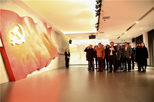 11月9日,中化集团战略执行部党支部以“在全面从严治党中锤炼党性”为主题,组织支部全体党员、积极分子赴北京市市委党校党员干部党性教育基地开展主题党日活动,中化集团总裁张伟以普通党员身份参加此次党支部活动。 教育基地通过图片、影像、视频、场景模拟等多媒体手段,为参观者提供了沉浸式体验,比如通过虚拟技术让大家“穿越时空”与李大钊同志讨论有关党性锤炼的问题,通过优秀党员事迹展播,让大家切身感受“平常时候看得出来”、“关键时刻站得出来”、“危急关头豁得出来”的共产党员本色……所展出的内容完整呈现了十八大以来党中央全面从严治党的坚定决心和党的历史上从严治党的宝贵经验。 在宣誓大厅,面对庄严的党旗,全体党员在党支部书记张学工的带领下再次宣读入党誓词,重温自己入党时的庄严承诺和坚定初心。