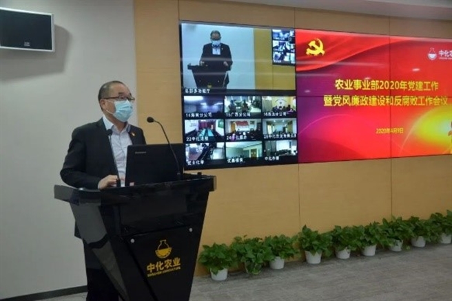 4月9日下午,中化集团农业事业部召开2020年党建工作暨党风廉政建设和反腐败工作会议,深入学习贯彻习近平新时代中国特色社会主义思想和党的十九大以及十九届历次全会精神,传达学习集团党建工作会议、党风廉政建设和反腐败工作暨警示教育大会会议精神,研究部署2020年党建和纪检工作任务。