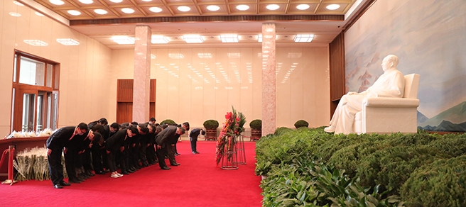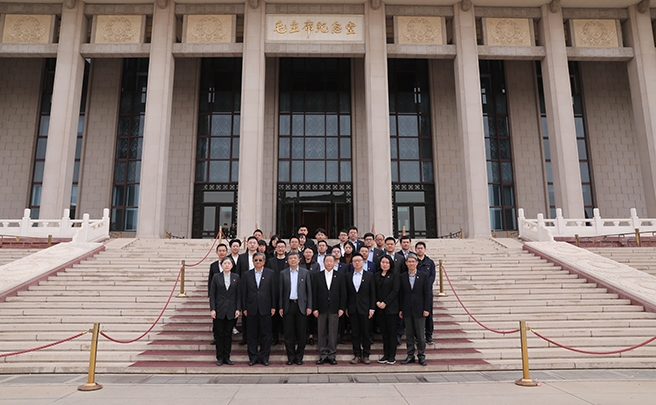 4月16日上午,中化集团办公室第一党支部集体赴毛主席纪念堂主题党日活动,瞻仰毛主席遗像,深切缅怀伟大领袖,重温革命历史。中化集团党组书记、董事长宁高宁,党组成员、副总经理阳世昊参加活动。 支部全体参与党员跟随引领员来到毛主席纪念堂北门,面向场馆排成两纵队。在庄严肃穆的气氛中,纪念堂的大门缓缓打开,队伍拾阶而上,向毛主席像敬献花篮。宁高宁细心地整理花篮上的缎带,全体人员面向毛主席像三鞠躬,随后列队缓步前行瞻仰毛主席遗容,缅怀伟大领袖。