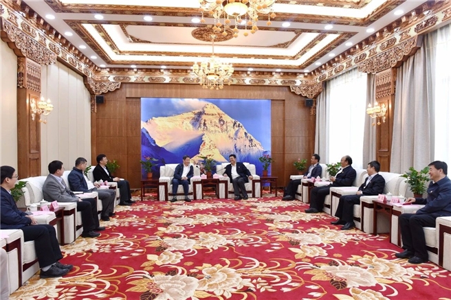 8月15日,宁高宁一行来到日喀则市,会见西藏自治区副主席、日喀则市委书记张延清等当地领导。张延清副主席对宁总一行的到来表示热忱欢迎。他谈到,中化集团的援藏工作政治站位高、重视程度高、支援力度大、援助项目实、干部素质强,各项工作一直走在央企援藏的前列。他对中化十六年来为日喀则经济社会发展做出的不懈努力和突出贡献表示由衷感谢。