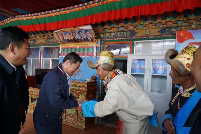 在岗巴县城,宁高宁实地调研中化集团多个援藏项目,仔细询问对口支援各项目进展情况。在“中化大道”上驻足停留,走访中化集团捐助建设的岗巴青少年图书馆和旅游扶贫产业基地之后,宁高宁一行来到“中国中化村”,看望慰问村委会干部职工。该村素有“中印边境第一村”之称,是距离中印边境最近的村庄。宁高宁为大家常年不畏艰苦、兢兢业业、舍家为国的精神状态所感动,现场表态中化将支援购置100辆摩托车,助力戍边同胞守卫祖国边疆。
