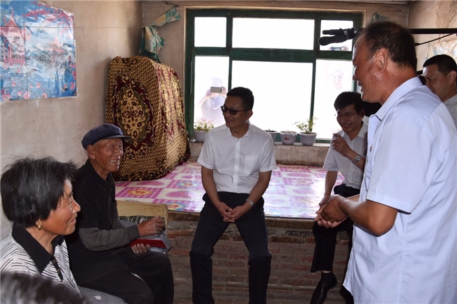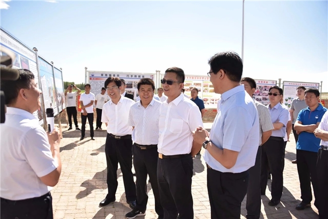 6月26-28日,中化集团总裁张伟赴内蒙古赤峰市阿鲁科尔沁旗、林西县,专题调研中化在当地的定点扶贫工作。期间,张伟会见内蒙古自治区副主席、赤峰市委书记段志强,围绕打赢脱贫攻坚战、深入开展多领域合作等话题作了深入交流。 在两天的调研行程中,张伟一行马不停蹄地依次考察了阿鲁科尔沁旗天山镇新平村MAP产业扶贫示范农场、太平庄村旅游扶贫、林西县大井镇乾福合作社马铃薯水肥一体化、大营子乡前地村集雨水窖太阳能滴灌、太阳能集雨水窖、东山生态扶贫产业园等近10个扶贫开发项目,实地了解项目进展。