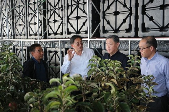 宁高宁听取林西县副县长、中化扶贫干部胡才志汇报 当天中午,宁高宁一行驱车前往林西县,对中化集团帮扶林西县十二吐村设施农业项目和东山扶贫产业园高标准温室项目进行深入考察。中化集团投资建设的水蓄热内外双保温装配式智能温室位于东山生态扶贫产业园核心地段,用于花卉栽培展示及水果、蔬菜种植等高效益行业,租金收入用于支持当地建档立卡贫困户增收。在听取林西县副县长、中化扶贫干部胡才志和十二吐乡党委书记谢艳丽的情况介绍后,宁高宁走进日光温室查看种植作物生长情况,仔细询问了暖棚设施项目投入产出情况及带动农民增收脱贫的效果。