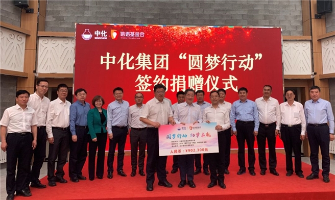 宁高宁代表中化集团员工捐赠“圆梦行动”助学善款 会上还举行了中化集团“圆梦行动”捐赠仪式,宁高宁代表中化集团全体员工向林西县和阿旗捐赠了圆梦助学善款,该款项将用于两地贫困中小学生就学及改善家庭生活条件,为实现智志双扶和阻断贫困代际传递奉献中化的一份深厚爱心。“圆梦行动”公益项目实施6年来,中化集团组织员工与内蒙古、西藏、青海等受援地贫困学生结对帮扶,广大中化员工慷慨解囊,倾情相助,累计帮扶贫困学生3600余名,捐款总额超过480万元,帮助受援地区贫困学生完成“求知梦”。 自2002年中化集团定点帮扶内蒙古以来,先后助推了和林格尔县、清水河县、林西县脱贫摘帽,累计派出挂职干部9批23人次,援助资金近1亿元,累计实施项目89个,涵盖现代农业产业、基本医疗设施、教育技术培训等方方面面,有力助推了当地农牧产业和民生教育事业发展,为打好脱贫攻坚战贡献了中化力量。 习近平总书记近期在内蒙古考察调研时指出,内蒙古地处祖国北疆,自然和生态资源十分丰富,民族文化多姿多彩,发展潜力巨大,战略地位重要。要切实保障和改善民生,着力解决教育、就业、社保、医疗、住房等各方面存在的突出问题、紧迫问题,坚决打赢三大攻坚战,把脱贫攻坚重心向深度贫困地区聚焦,重点攻克“三保障”面临的难题,确保如期全面建成小康社会。下一阶段,中化集团将深入贯彻落实习近平总书记重要讲话精神,准确把握职责定位,充分发挥企业优势,继续加大定点扶贫资金投入,积极帮助林西县巩固脱贫成果,全力支持阿旗如期脱贫摘帽,与全国人民一道如期全面建成小康社会,把祖国北部边疆风景线打造得更加亮丽!