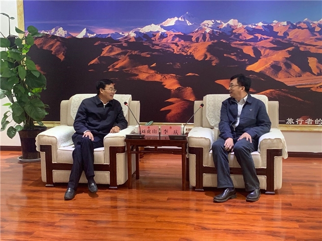 8月14日下午,李庆一行在日喀则市会见市委副书记、市长刘虎山。会谈中,刘虎山对中化集团连续17年对口支援岗巴县所取得的突出成效表示高度肯定及衷心感谢。他表示,中化集团的援藏工作政治站位高、支援力度大、干部素质强;下一步岗巴县委县政府要将岗巴县小康示范村建设与中化集团“建设美丽边疆小镇”工作有机结合起来,充分形成合力,把岗巴县和吉汝村打造建成具有鲜明示范效应的边疆村镇。李庆向与会领导介绍了中化新一批援藏干部,并希望市县各级对中化援藏干部一视同仁、严格要求、多压担子,帮助他们在三年的任期内磨炼政治素质、练就高强本领,为岗巴县的脱贫攻坚贡献更多的力量。李庆表示,帮助岗巴县稳定脱贫并夯实脱贫成果,是中化集团义不容辞的责任。