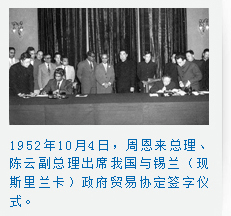 我国打破“封锁”“禁运”的一个标志性事件,是“米胶协定”的签署和执行。橡胶是联合国巴黎统筹委员会公布的对社会主义国家实行禁运的重要战略物资。1952年12月18日,中国与斯里兰卡(旧称锡兰)政府签订第一个《中国与锡兰关于橡胶和大米的五年贸易协定》(俗称《米胶协议》),即我国每年以27万吨大米换取锡兰5万吨橡胶。这是新中国同非社会主义国家第一笔重大易货贸易协定。该协定从1952年执行到1982年,长达30年。其中,橡胶的进口便由中国进出口公司具体负责。《米胶协定》的执行不仅为我国换得了急需的橡胶,支援了抗美援朝,同时也为打破西方资本主义国家的封锁禁运发挥了积极作用。