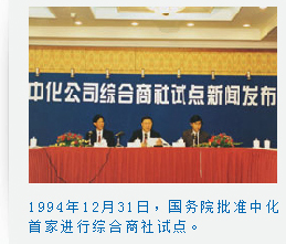 在总结国际化经营和借鉴当时日本、韩国综合商社发展模式的基础上,公司又提出了综合商社试点的设想。1994年12月31日,国务院正式批准中化在全国首家进行综合商社试点,并批准把中国对外经济贸易信托投资公司划转中化管理,旨在建设以贸易为主业,集贸、工、技、金融、信息等功能为一体的国际化、实业化、多元化、集团化综合贸易公司。