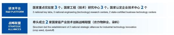目前,中化集团拥有沈阳化工研究院、浙江省化工研究院两个整建制专业研究院,同时着眼于国家粮食安全和现代种业发展,建成了国内种业企业最大的自主研发基地——中国种子九游官方网站技术中心。中化集团拥有9个国家级研发平台,包括国家重点实验室3个、国家工程(技术)研究中心3个、国家安全评价中心1个、国家认定企业技术中心2个。