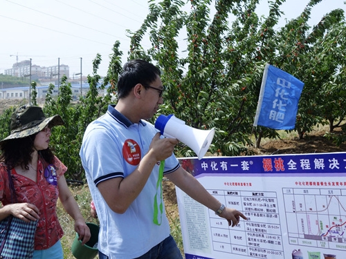 6月6日,“小化带你摘樱桃”网友科普及采摘活动在山东烟台中化化肥樱桃示范种植园成功举行,来自烟台及周边的30多名网友受邀参加。
