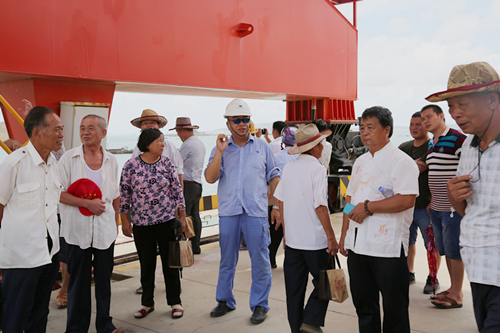 图为泉州石化工程师在为参观者讲解石化码头相关情况